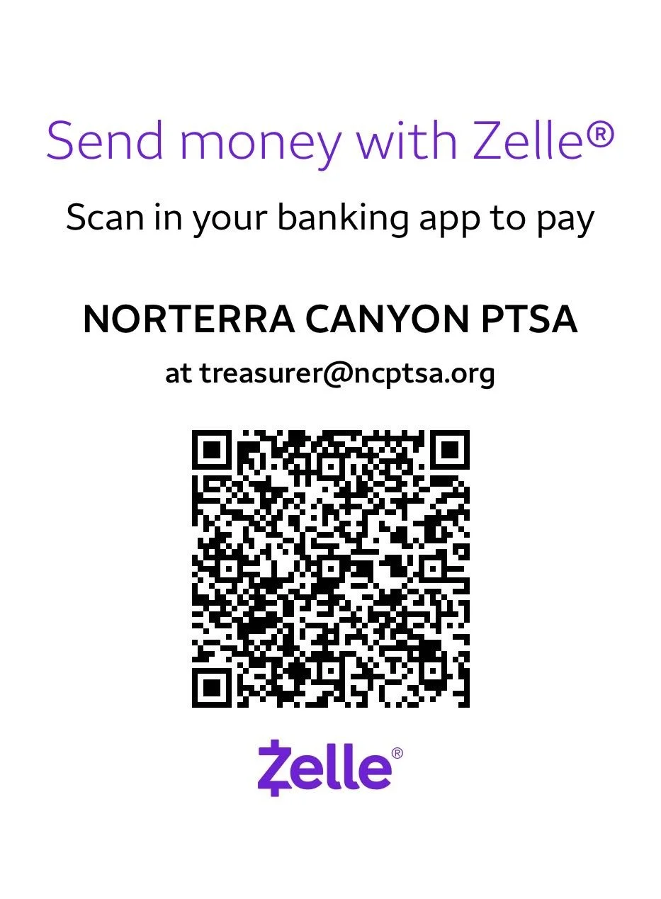 Make sure you set-up your Zelle donation to: Norterra Canyon PTSA, treasurer@ncptsa.org